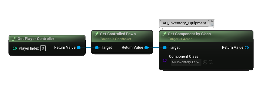 All of our equipment logic occurs inside of the AC_Inventory_Equipment component found in the Blueprints/Components/Systems/ folder. For the player this component is added to our possessed pawns.