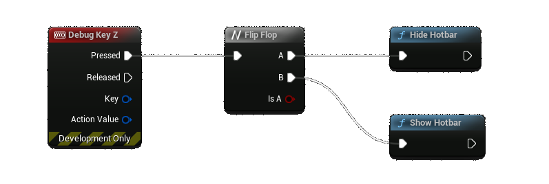 The events for these input actions can be found in the event graph of the UI_Hotbars widget found in the UIs/Hotbar/ folder.